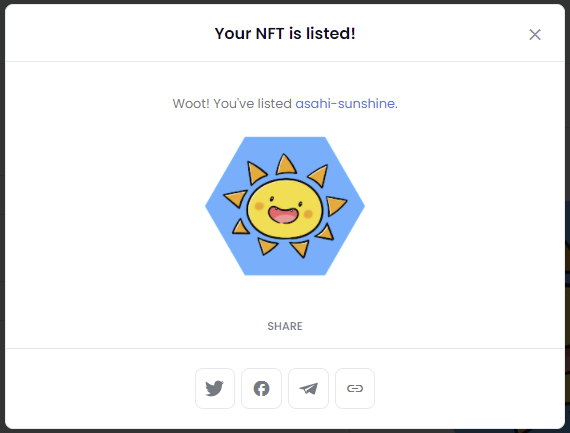 Polygonチェーンであれば出品には手数料がかかりませんので、気軽にまずはやってみましょう。